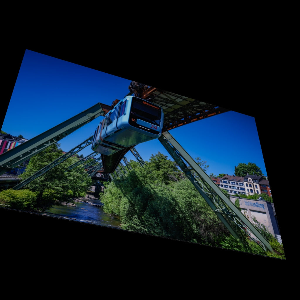 The Wuppertal suspension railway on its way to Oberbarmen. In the background on the right is Loher Brücke station, and in the background on the left is the Junior University (Photographer: DE, 2025).