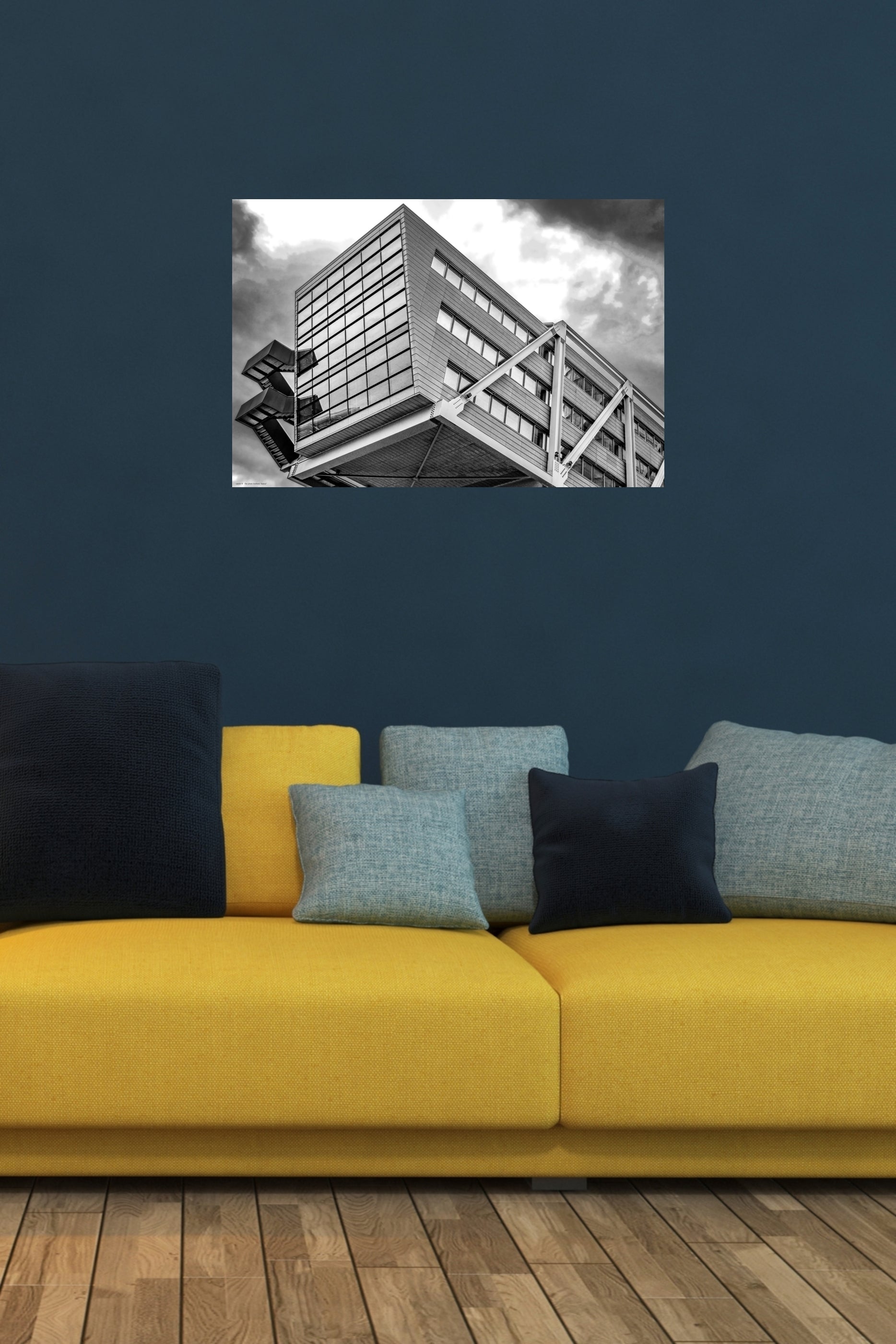Beautiful black-and-white mural from the Media Harbor in Düsseldorf, now home to many architectural highlights by famous and renowned architects—both international and regional (Photographer: DE, 2021).
