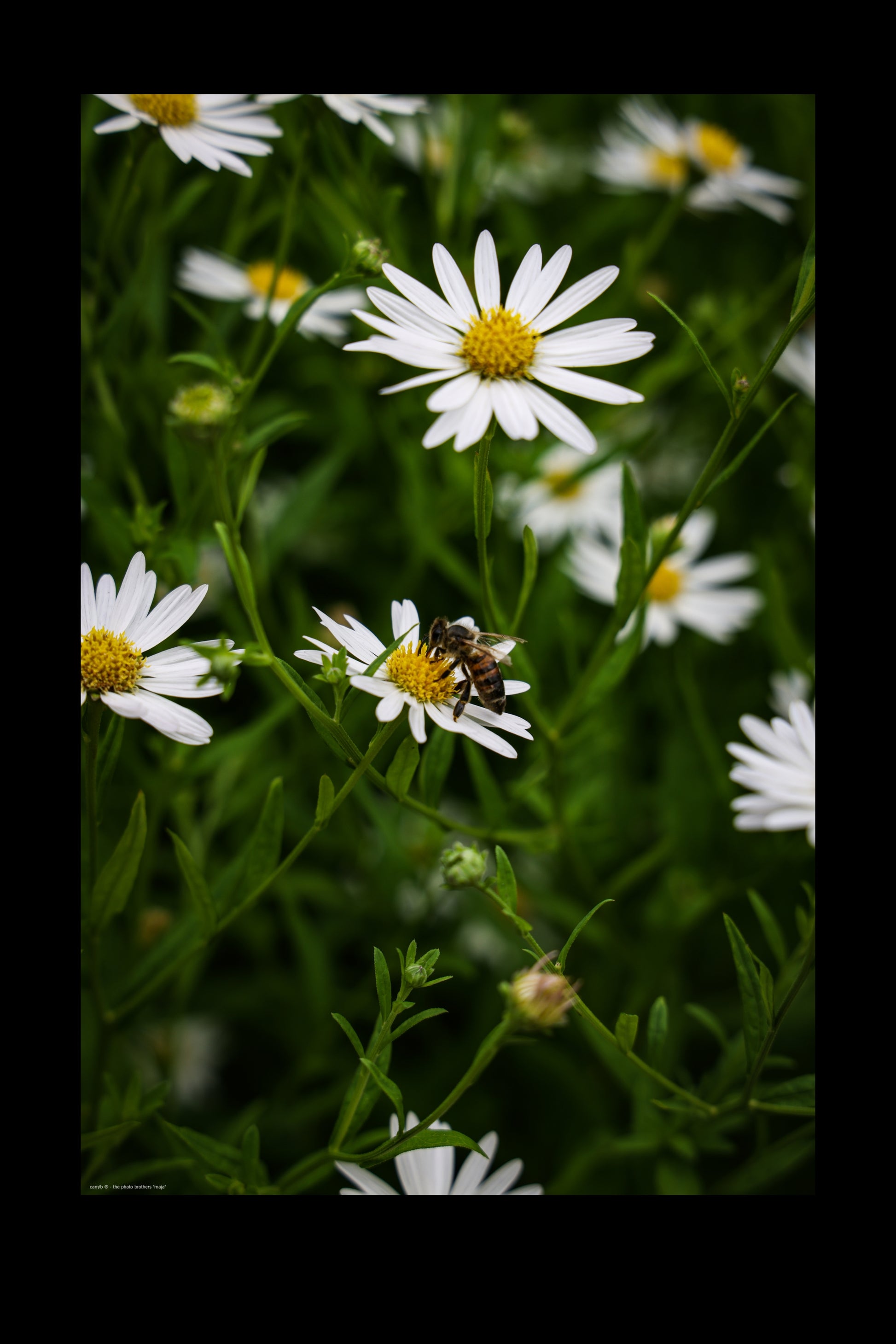 Bee at work in daisy field in Papenburg city park (Photographer: DE, 2022).