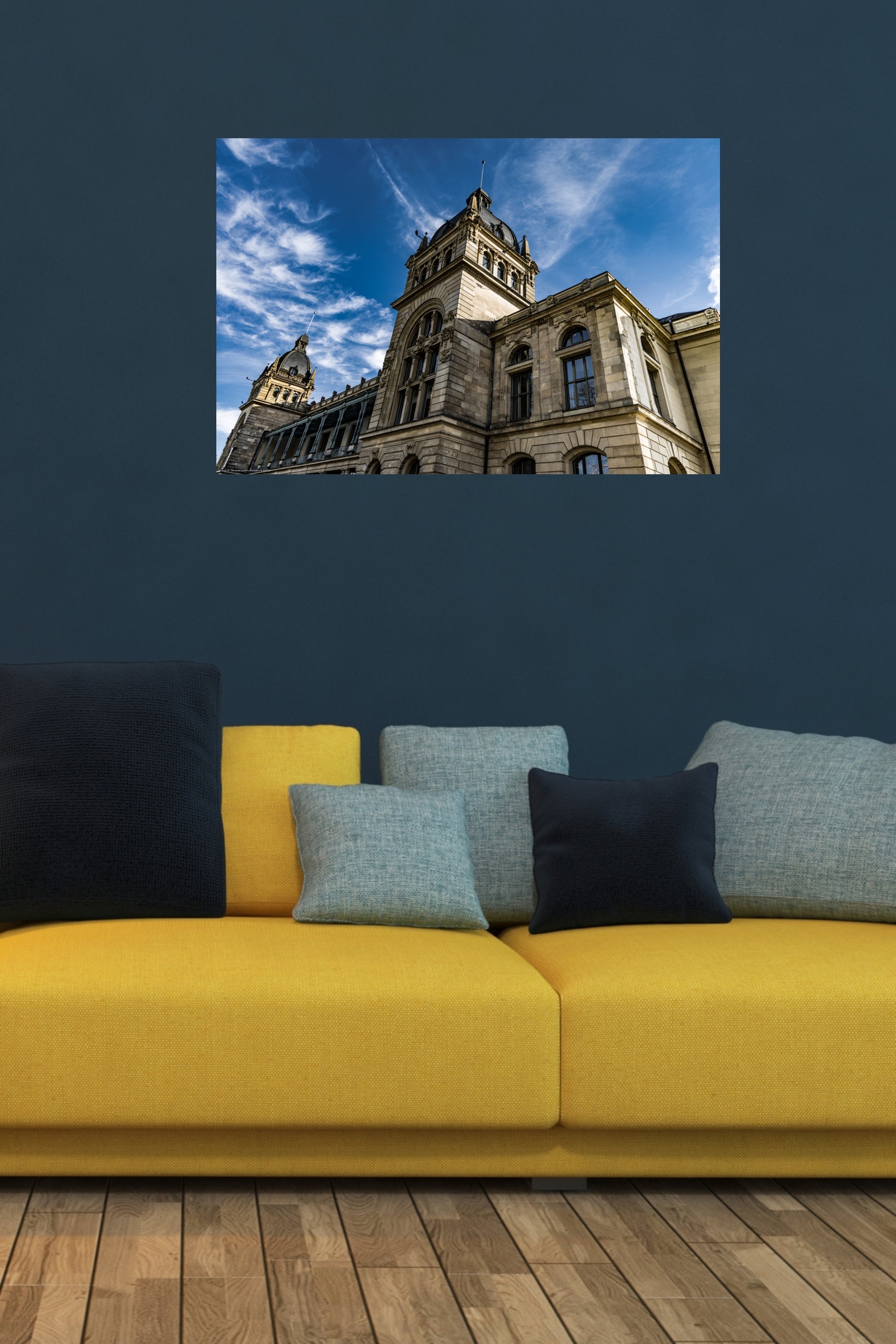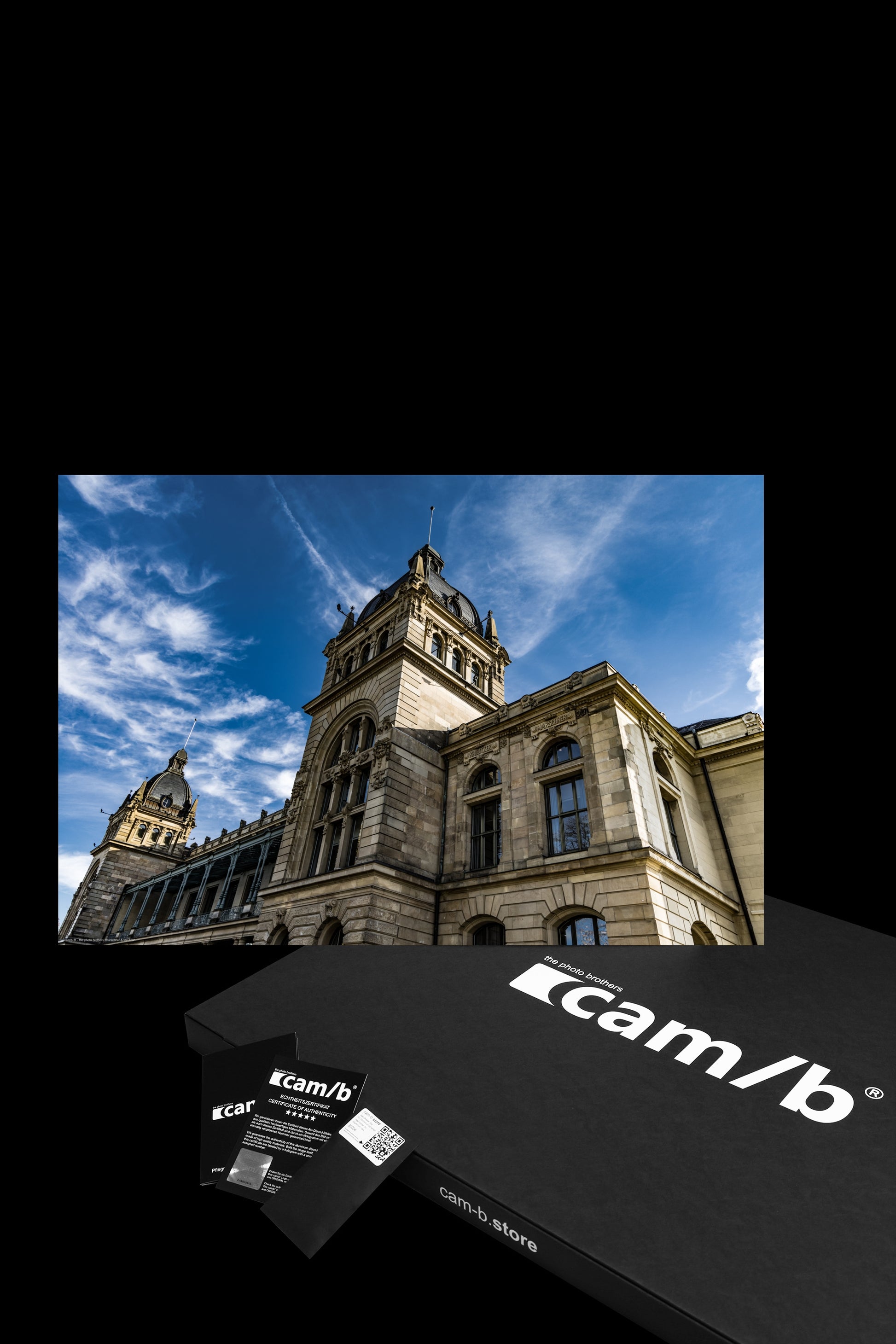 Aluminum mural, direct print on 3 mm aluminum Dibond composite panel. Durable, dimensionally stable, UV and weather resistant, matt and non-reflective surface. Composite panel made of two approx. 0.3 mm thick aluminum sheets and polyethylene core. Waterproof and suitable for protected outdoor areas. Including aluminum wall bracket (pre-assembled) and mounting material consisting of eccentric washers, dowels and screws.