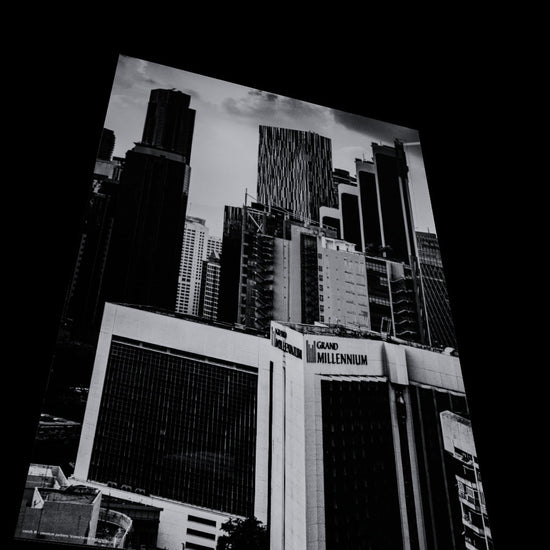 Bring the timeless elegance of modern architecture into your rooms with this impressive wall mural. The black-and-white photograph captures the Kuala Lumpur skyline in a moment of pure clarity. At the center is the iconic Grand Millennium, framed by the contrasting textures and geometric lines of the surrounding skyscrapers (Photographer: Christian Horenkamp, 2025).