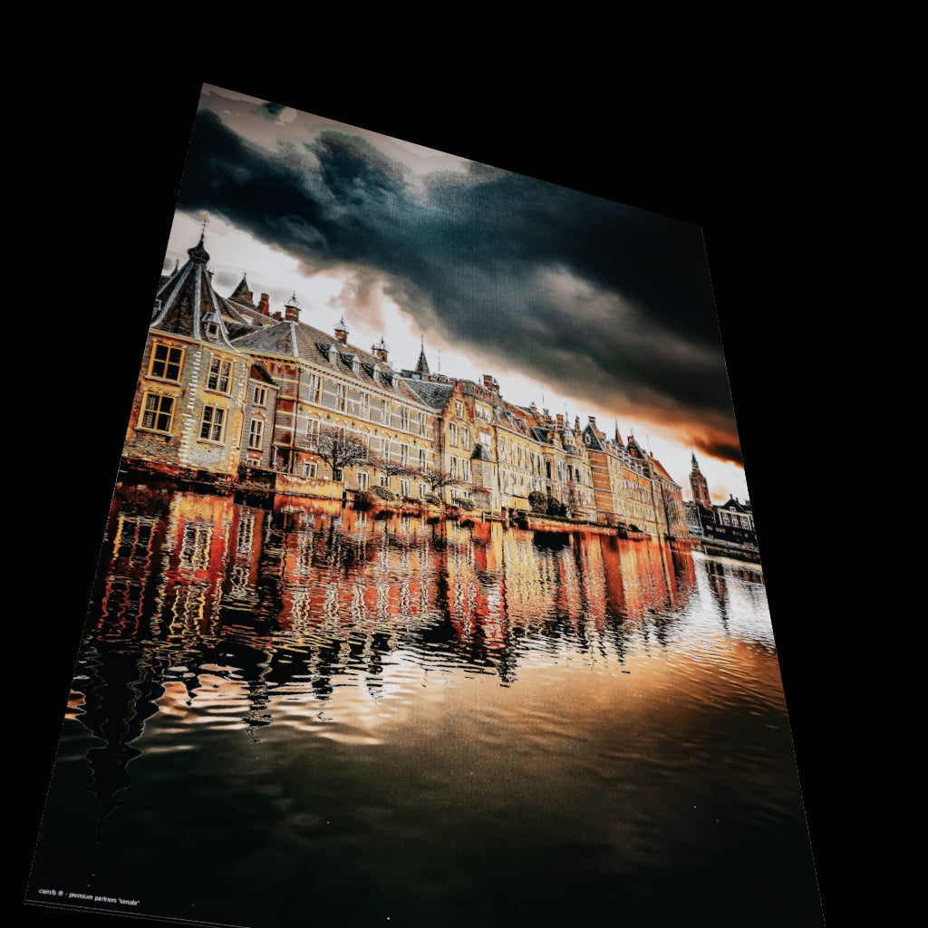 The Binnenhof is located in the center of The Hague. This 13th-century building now serves as the seat of the First Chamber and Parliament. This beautiful mural depicts the building itself and the small lake in front of it in a mystical edit that matches the image (Photographer: Christian Horenkamp, 2024).