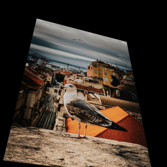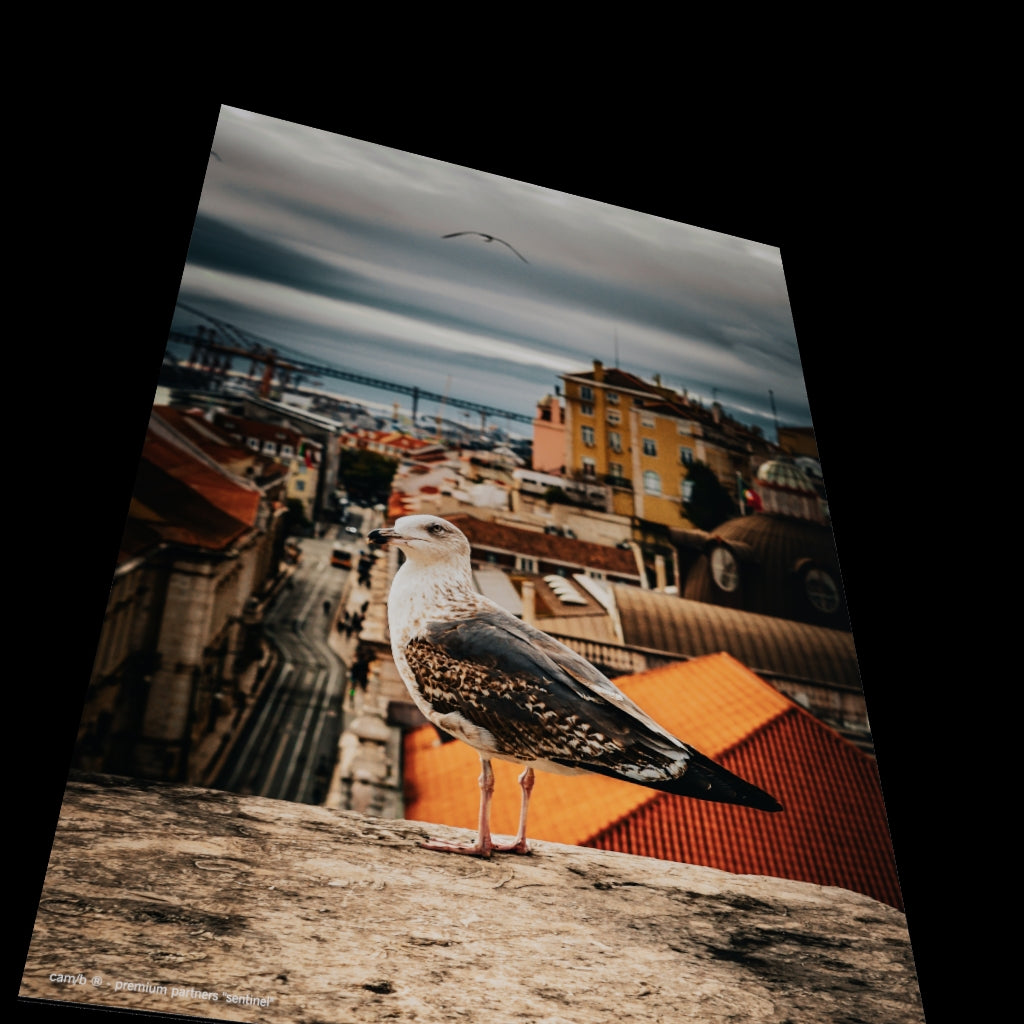 A very special moment captured in this fascinating mural from Lisbon: a seagull has found the perfect spot on the Arco da Rua Augusta and is enjoying the picturesque view of the city. Its sharp gaze takes in every detail, from the red roofs of the old town to the distant Tagus River (Photographer: Christian Horenkamp, 2025).