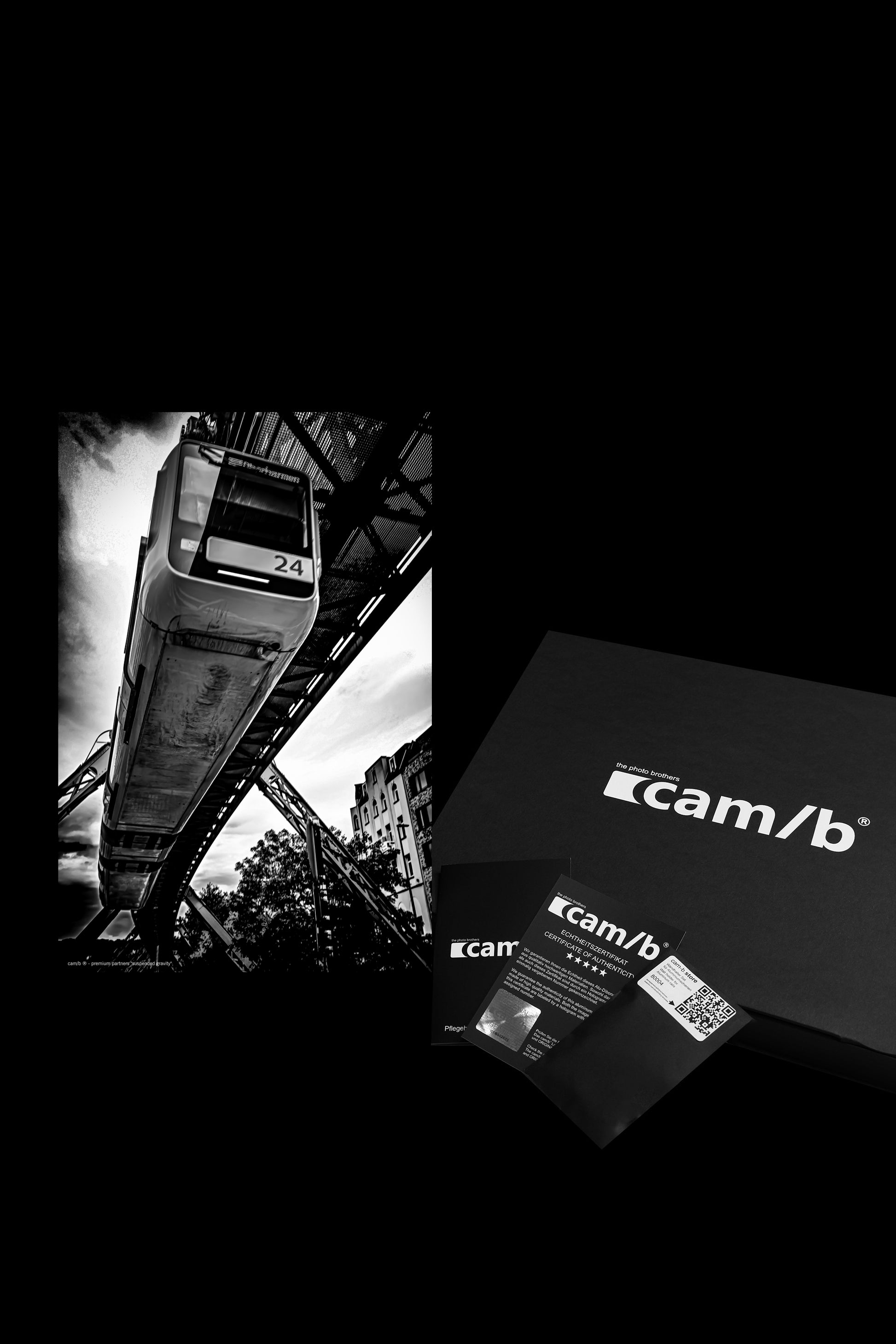 Experience the landmark of the Bergisches Land from an entirely new perspective. The wall art piece "Suspended Gravity" captures the powerful dynamics of the Wuppertal Suspension Railway in a moment of apparent weightlessness.