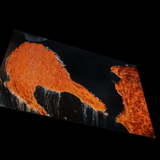 Abstract wall art of the rusting body of an old car (Photographer: DE, 2021).