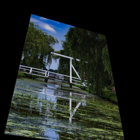 Beautiful mural from Papenburg in Emsland with a view of one of the numerous canals that characterize the cityscape. The city of Papenburg is the longest and oldest fen colony in Germany and was first mentioned in historical records in 1431 (Photographer: DE, 2022).