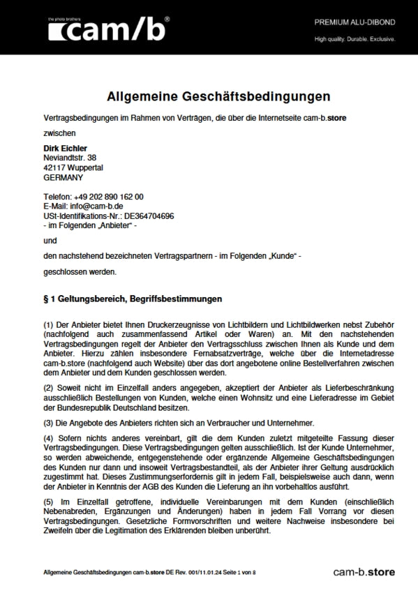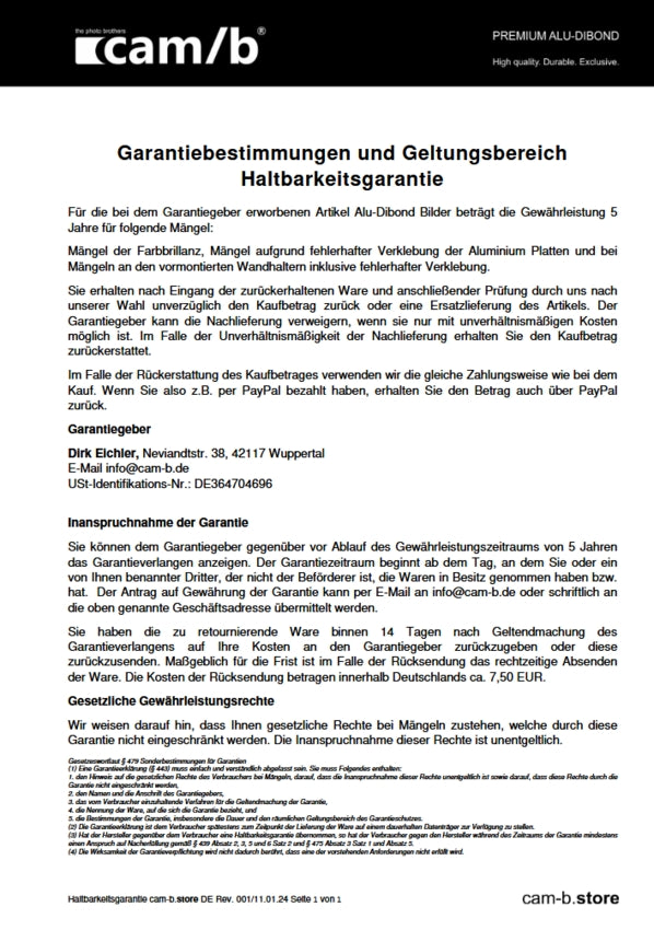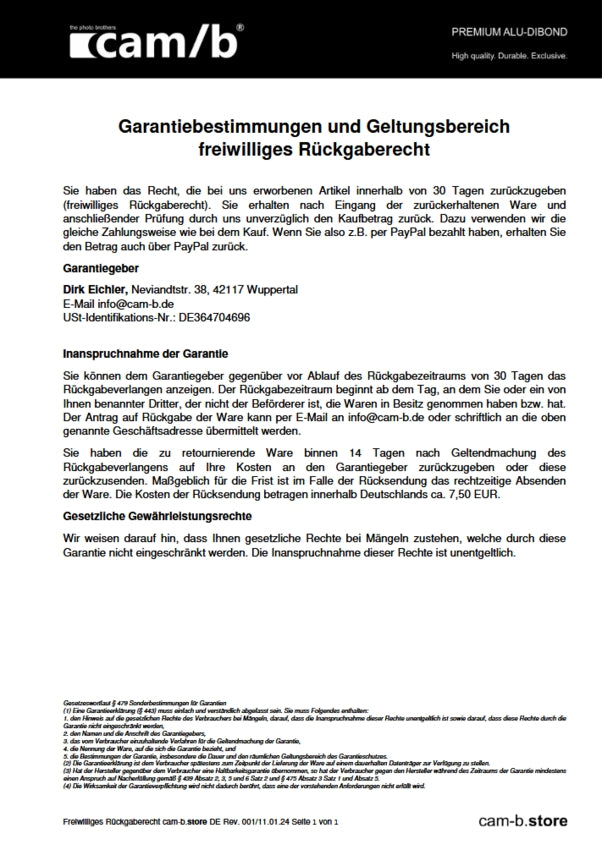 Unsere Allgemeinen Geschäftsbedingungen, Garantie Bedingungen, Rücksendeformulare, Borschablonen für die fachgerechte Montage unserer Wandbilder, Flyer und vieles mehr: Alle wichtigen Informationen für Sie als kostenloser PDF Download.
