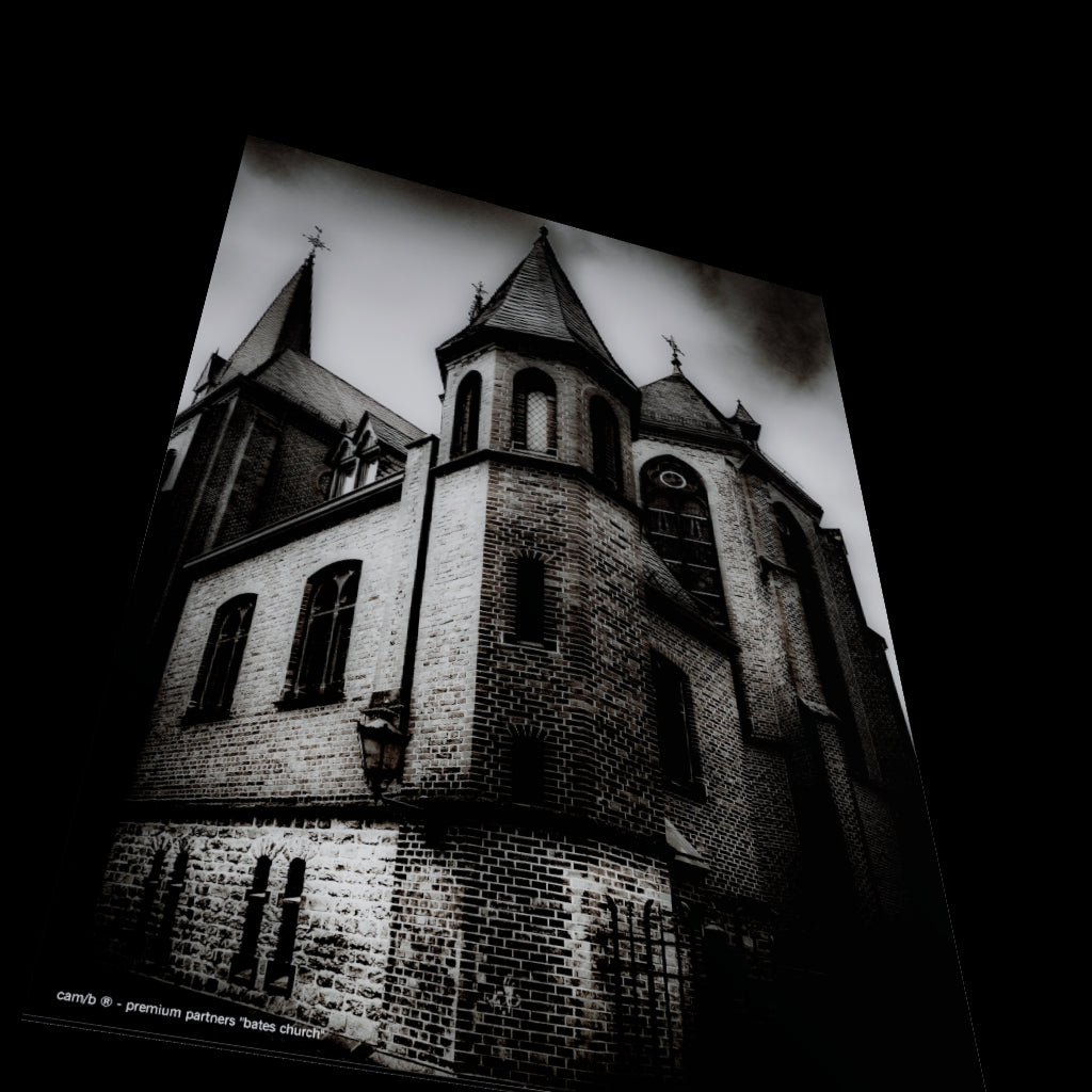 Tauchen Sie ein in die fesselnde Atmosphäre dieser dramatischen Architekturaufnahme, die die erhabene und zugleich ominöse Ausstrahlung der katholischen Kirche St. Michael in Velbert einfängt. Die dramatische Perspektive und die intensive Schwarz-Weiß-Darstellung rufen unweigerlich Bilder aus Alfred Hitchcocks Meisterwerk "Psycho" wach, fast wie eine Szene, die dem Haus der Bates-Familie entsprungen ist, in dem Norman Bates seine schrecklichen Geheimnisse hütete. Der starke Kontrast von Licht und Schatten verleiht dem Motiv einen zeitlosen, künstlerischen Charakter und eine Ahnung von düsterer Film-Noir-Ästhetik. Ein kraftvolles Statement-Stück für jeden Raum, das Betrachter durch seine cineastische Wirkung und die reiche, unheimliche Stimmung in seinen Bann zieht (Fotograf: Andreas Kretzschmar, 2025).
