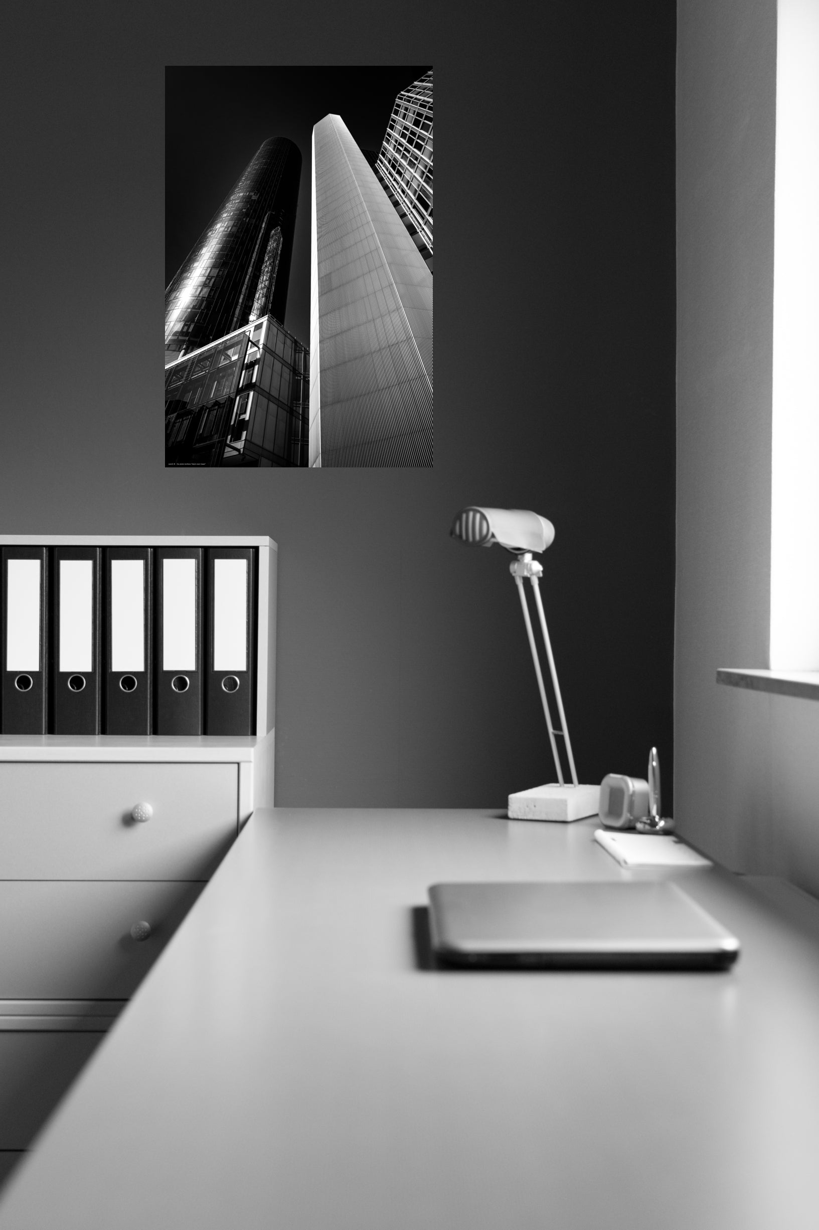 Sehr dunkles S/W Edit aus dem Frankfurter Bankenviertel, auf der linken Seite der Main Tower, das höchste Gebäude in Frankfurt am Main (Fotograf: DE, 2022).