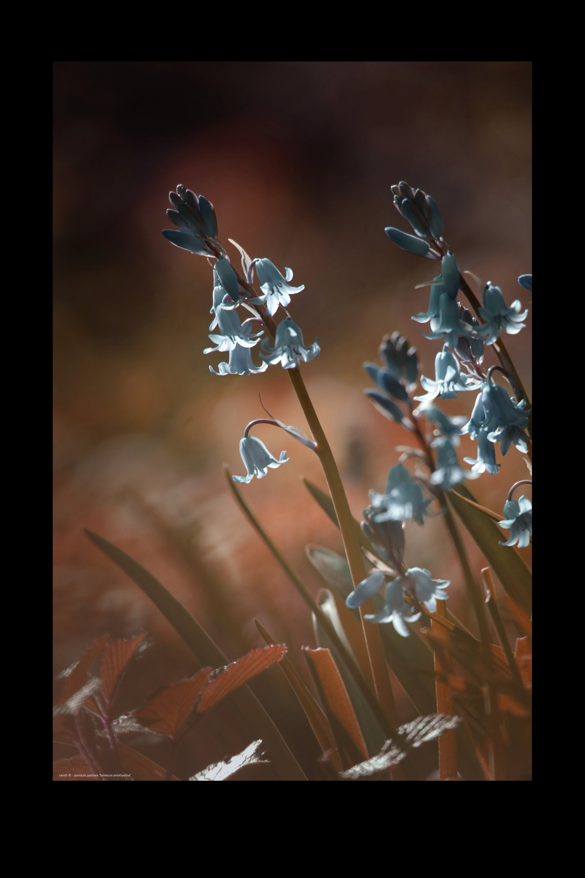 Wunderschönes, leicht abstrakt wirkendes Bild einer hellblauen Wiesenhyazinthe. Diese Pflanzenart ist ausdauernd, krautig, und erreicht Wuchshöhen von 10 bis 25 Zentimetern (Fotograf: wuppigraphy, 2022).