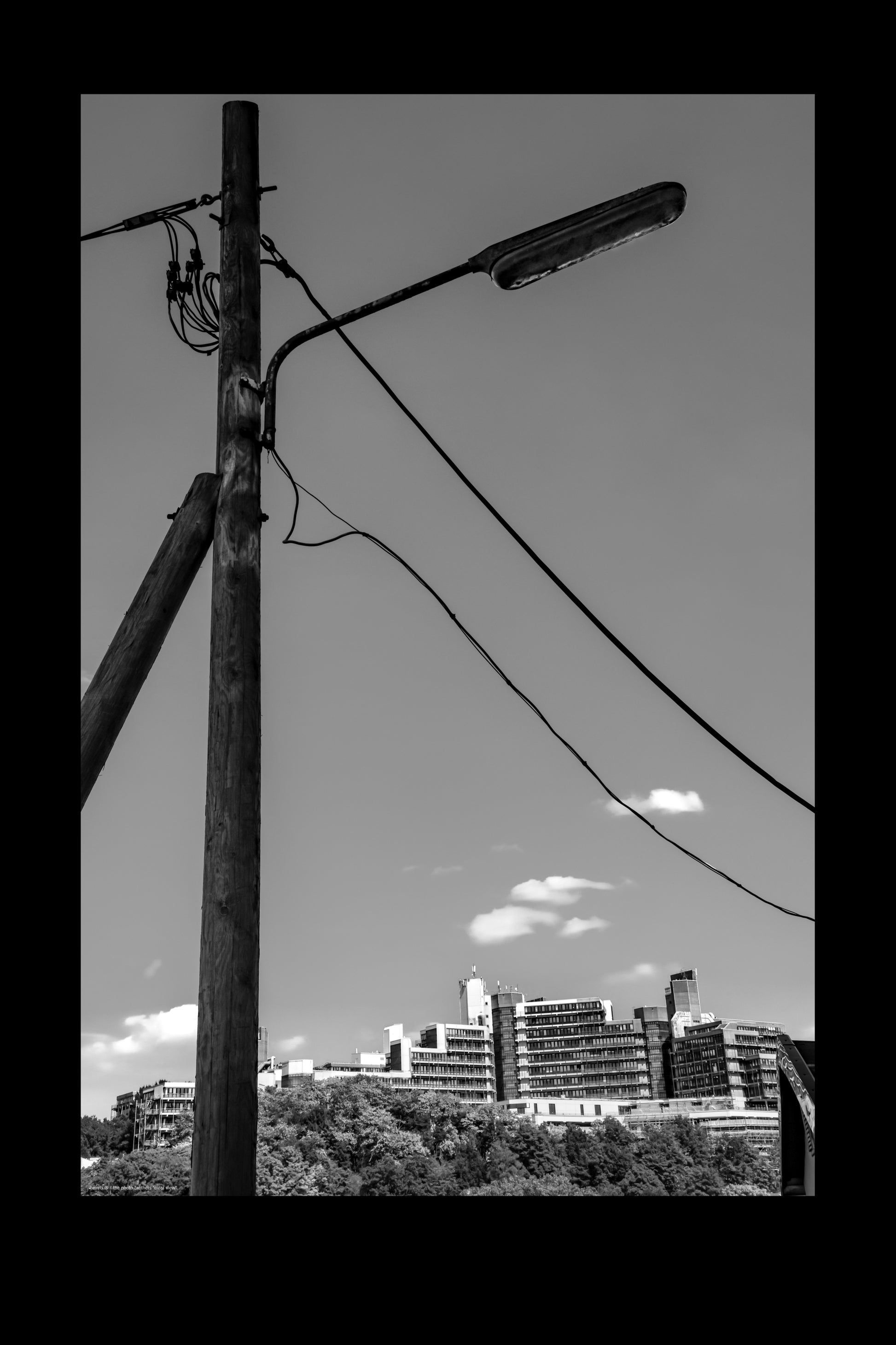 Schöner Blick auf die Bergische Universität Wuppertal, gegründet 1972, als Schwarz/Weiß Edit (Fotograf: DE, 2022).