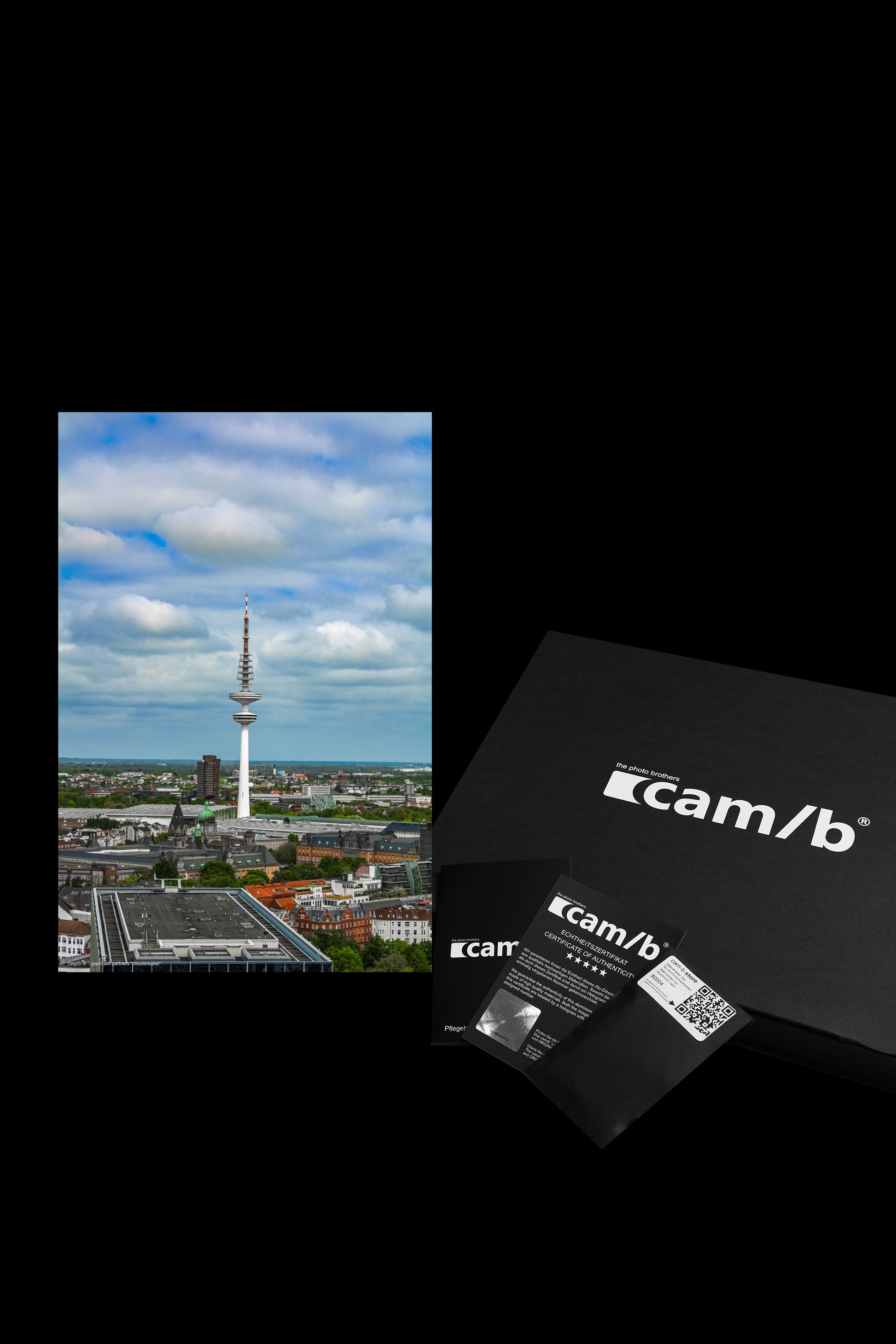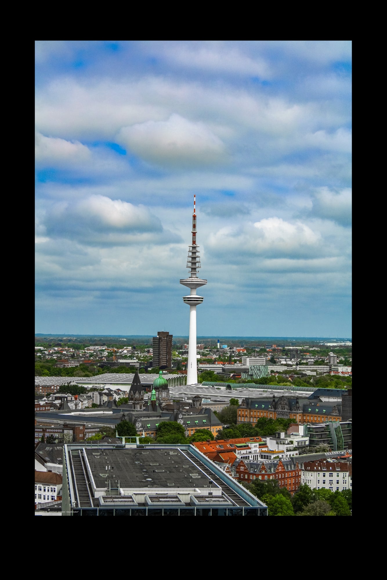 Dieses faszinierende Wandbild präsentiert den ikonischen Heinrich-Hertz-Turm Hamburgs als zentrales Motiv. Die Aufnahme zeigt, wie der elegante, weiße Riese kraftvoll in den Himmel ragt und die Grenze zwischen der hanseatischen Stadt und der darüberliegenden Wolkendecke durchbricht. Die dramatische Himmelsstimmung mit den aufgetürmten Wolken verleiht dem Bild eine tiefgründige Atmosphäre (Fotograf: Luise, 2025).