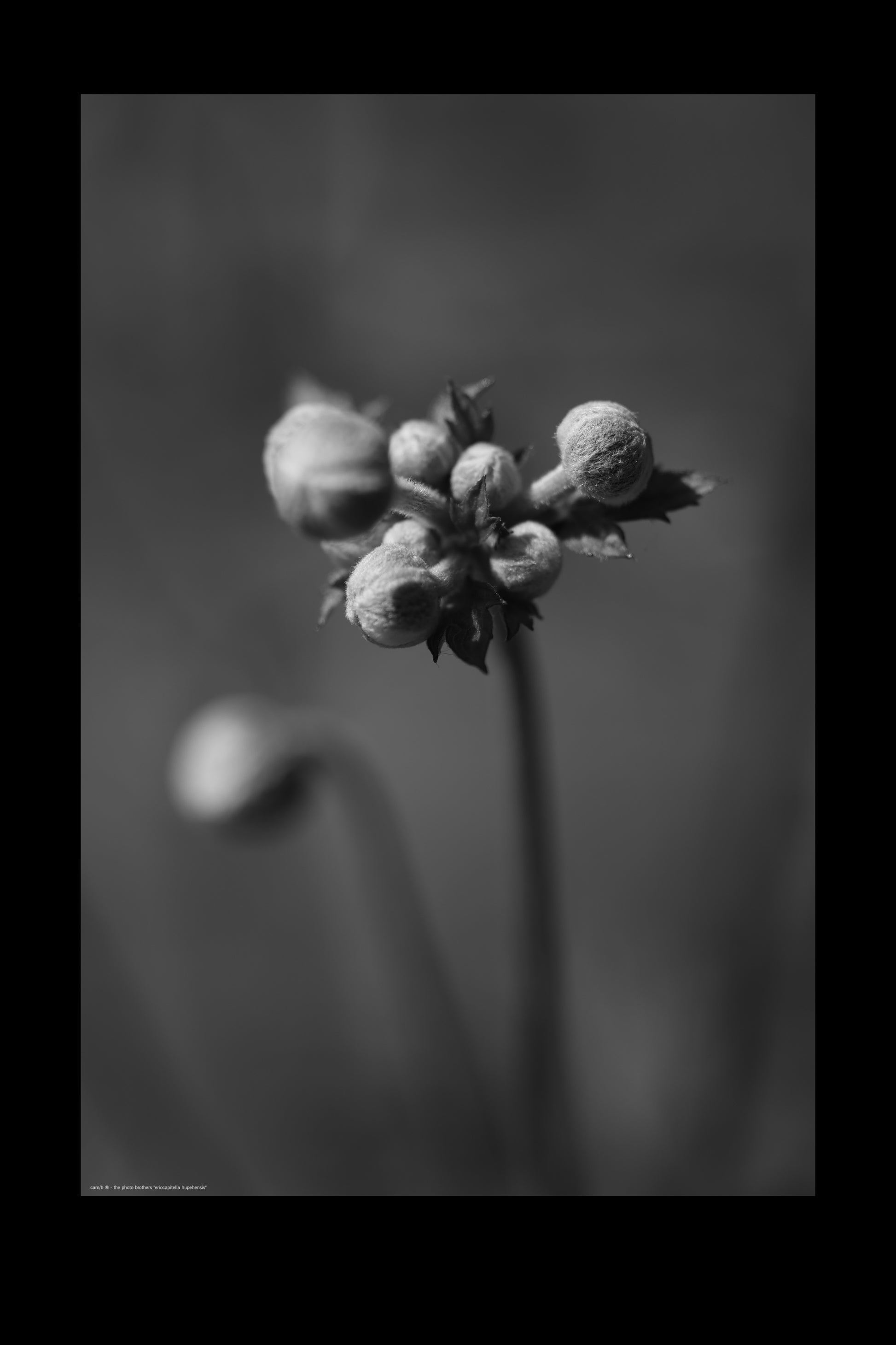 Schöne Makro Aufnahme in s/w einer Herbst-Anemone mit noch geschlossener Blüte (Fotograf: DE, 2024).