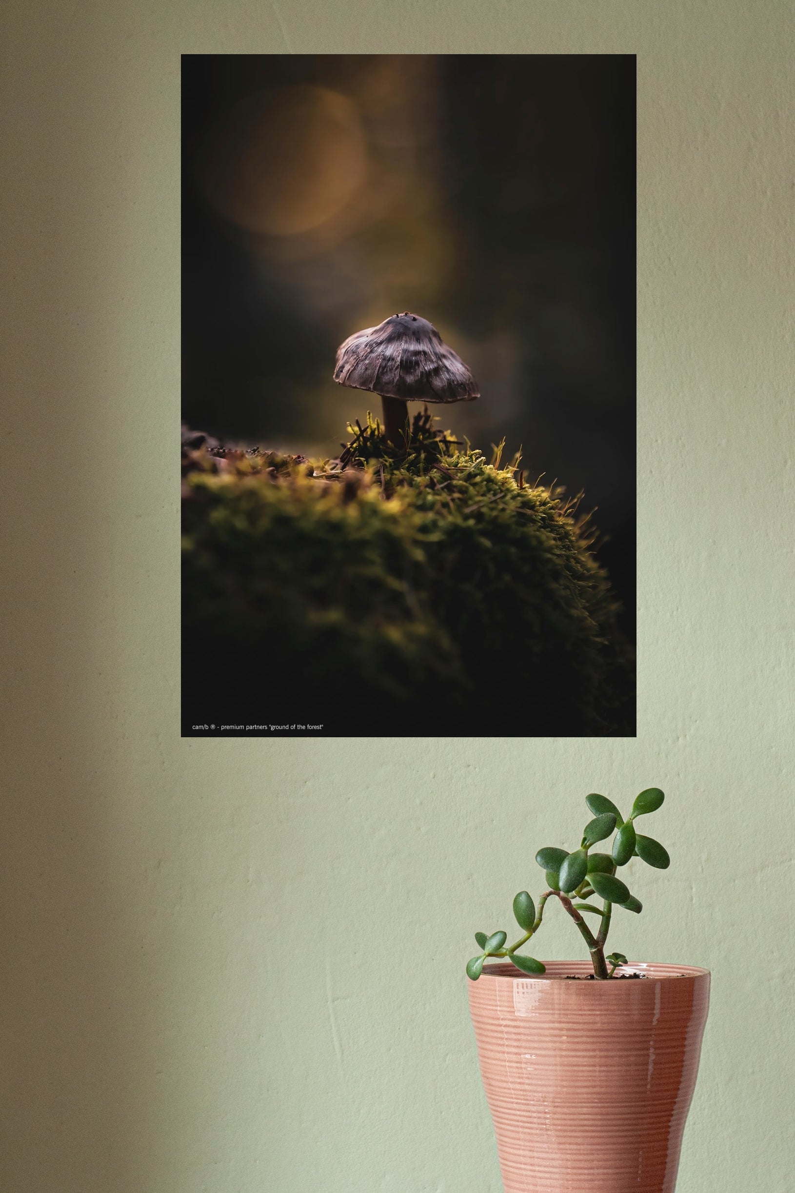 Wunderschönes Bild eines Falten Tintlings Pilzes im herbstlichen Wald, der Boden ist mit Moos bedeckt (Fotograf: wuppigraphy, 2022).