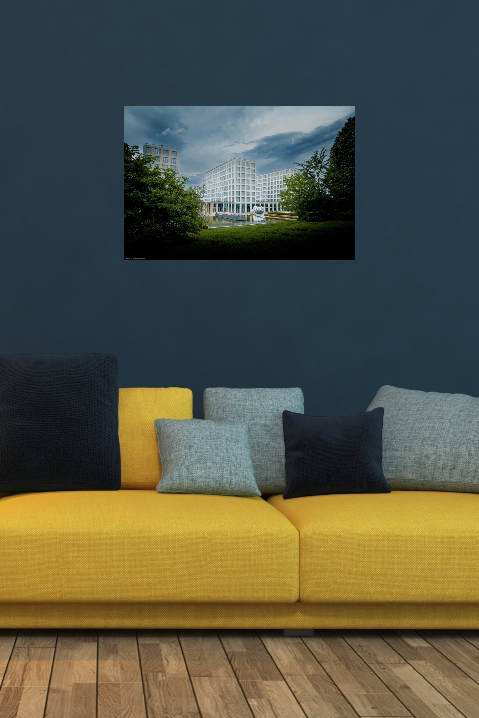 Aluminium Wandbild, Direktdruck auf 3 mm Aluminium-Dibond-Verbundplatte. Langlebig, formstabil, UV- und Witterungsbeständig, matte und reflexionsfreie Oberfläche. Verbundplatte aus zwei ca. 0,3 mm starken Aluminium Platten und Polyethylen Kern. Wasserfest und für den geschützten Außenbereich geeignet. Inklusive Aluminium Wandhalter (vormontiert) und Befestigungsmaterial bestehend aus Exzenter Scheiben, Dübel und Schrauben.