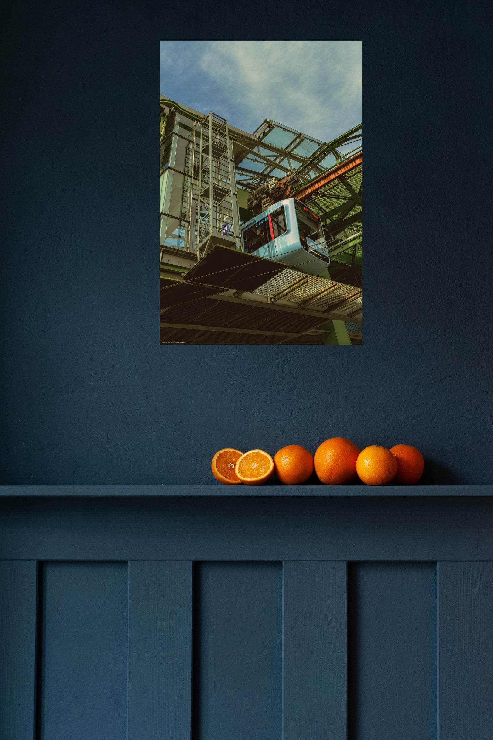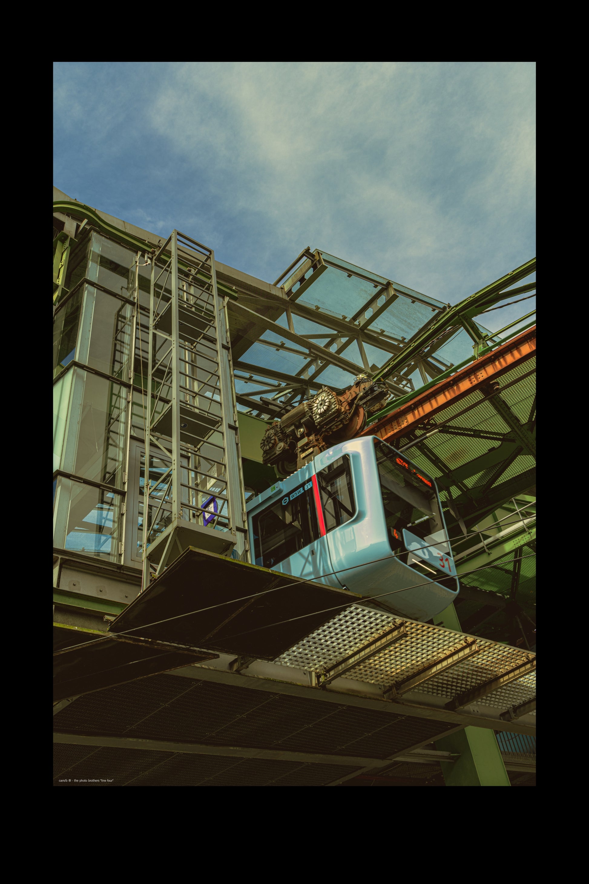 Die Wuppertaler Schwebebahn bei der Ausfahrt aus der Endhaltestelle Vohwinkel (Fotograf: DE, 2024).