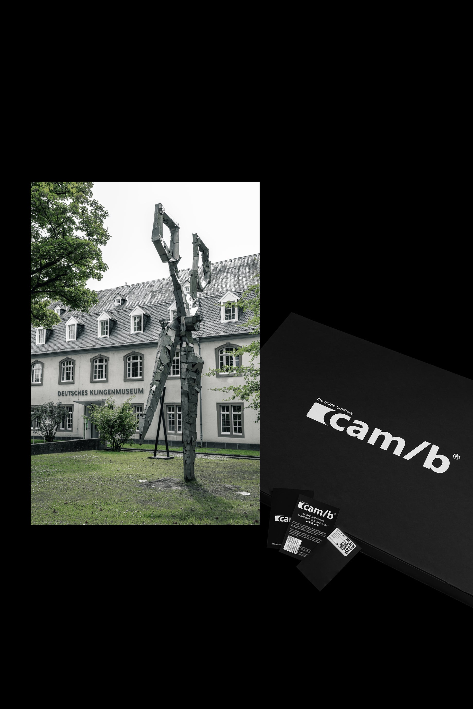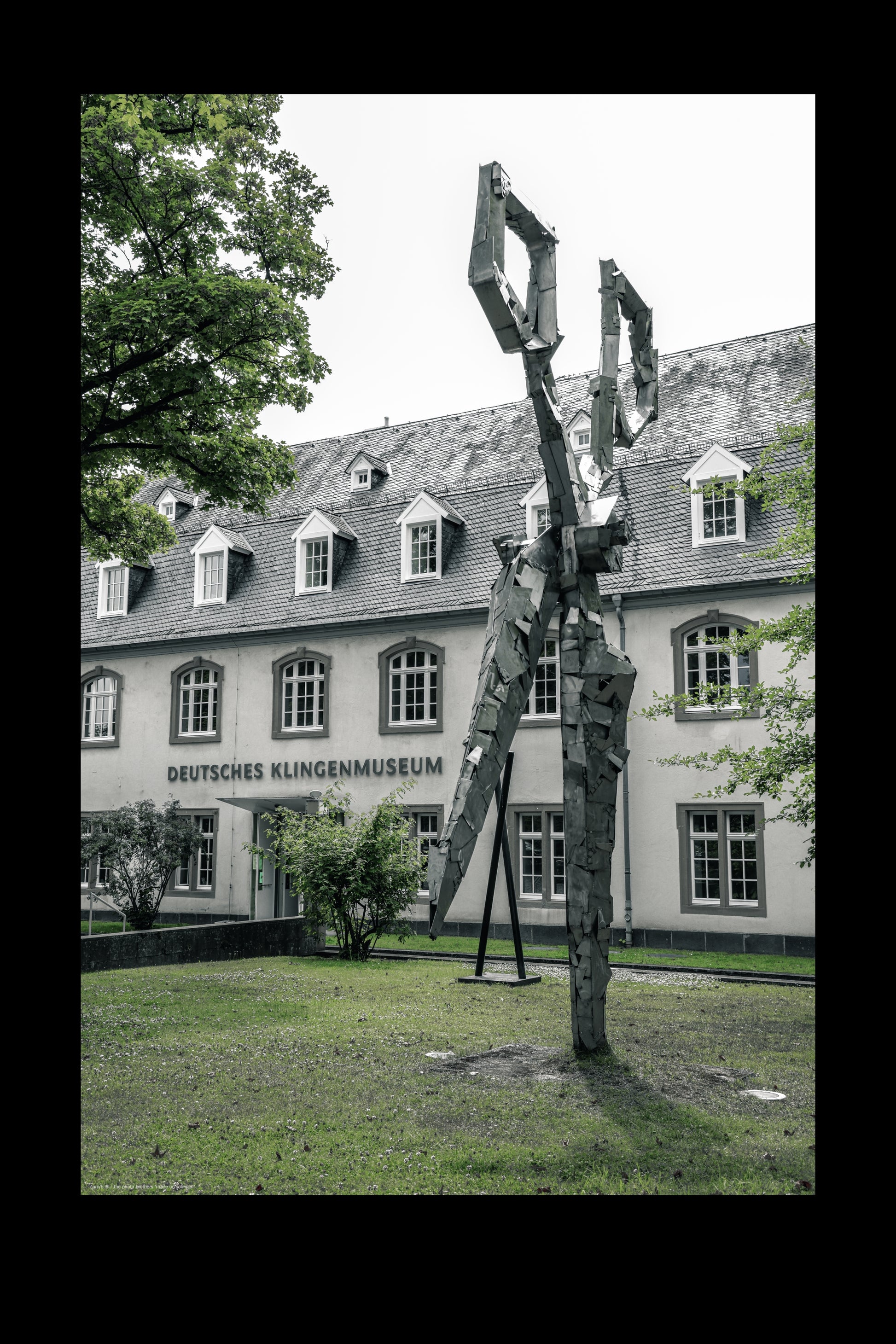 Blick auf das Deutsche Klingenmuseum in Solingen Gräfrath. Wo sonst als in der Stadt der weltbekannten Messer und Klingen könnte dieses wohl stehen? Der Begriff "made in Solingen" steht seit Jahrzehnten weltweit für Produkte höchster Güte und Qualität (Fotograf: DE, 2022).
