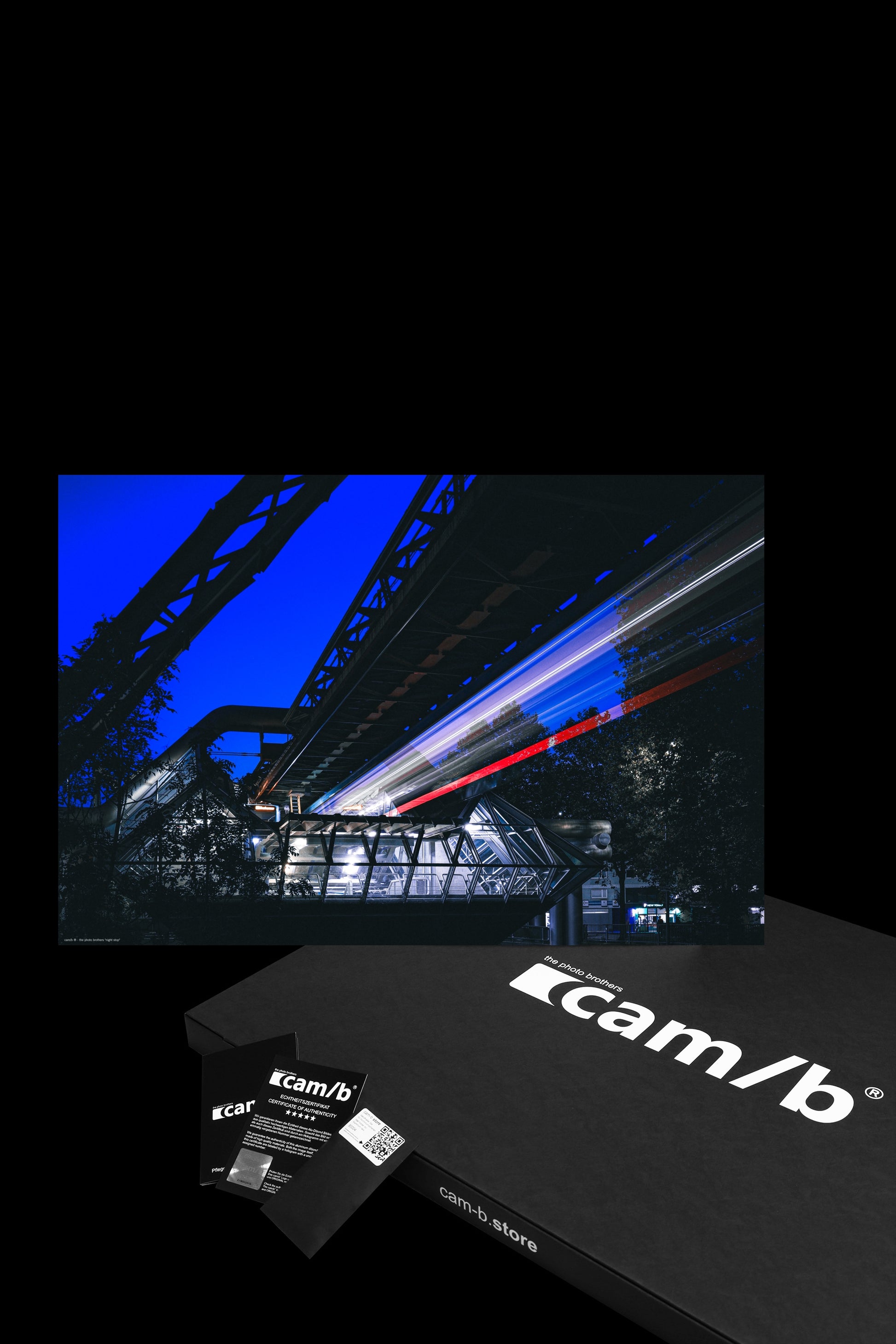 Phantastische Langzeitaufnahme von Wuppertal Elberfeld bei Nacht mit einfahrender Schwebebahn in die Station Ohligsmühle (Fotograf: DE, 2024).
