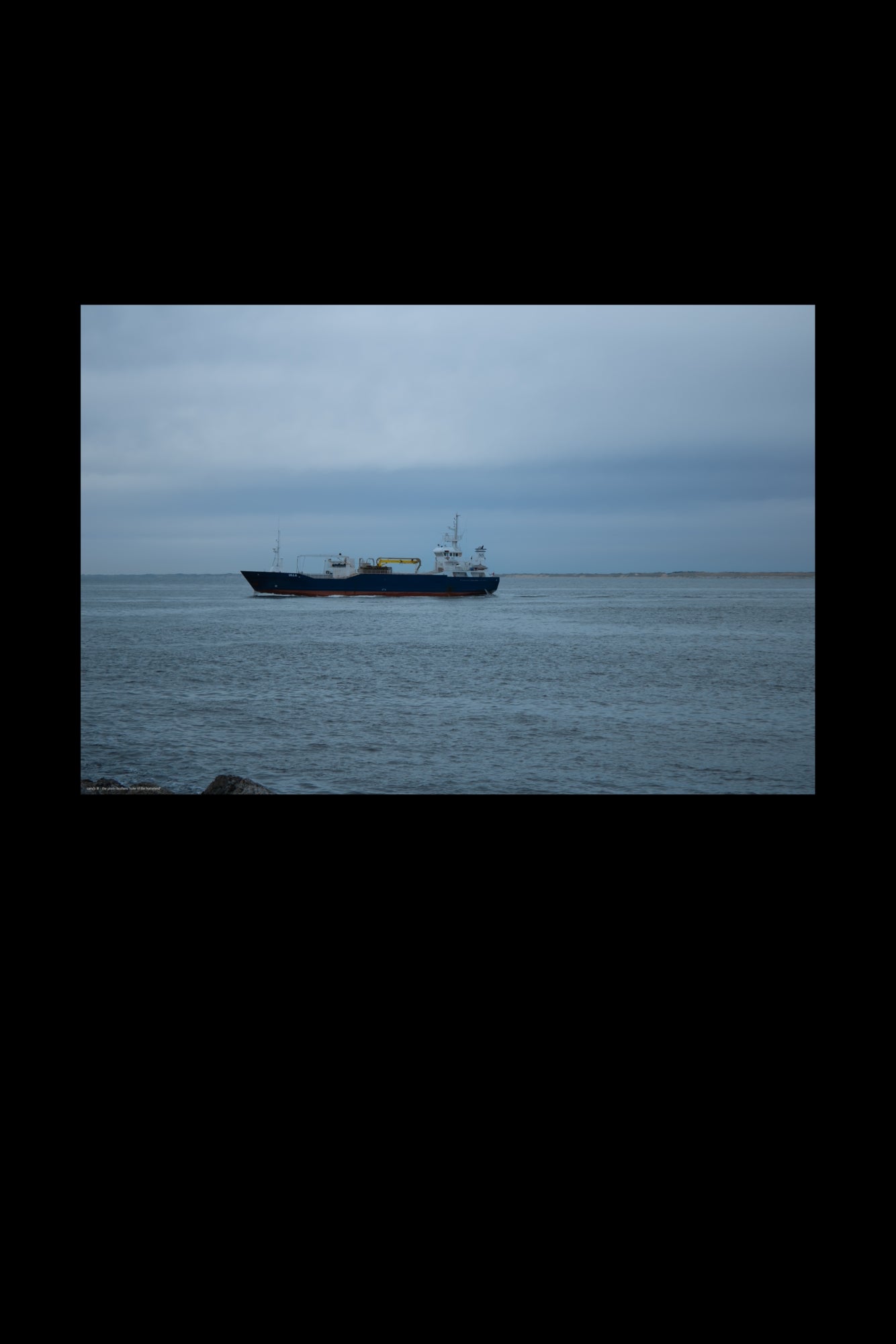 Das Frachtschiff Ulla vor der Küste der Niederlande. Die MW Ulla fährt unter der Flagge von Dänemark und wurde 1989 gebaut. Der Name Ulla kommt von Ulrike was „reiche Erbin“ oder „Herrscherin der Heimat“ bedeutet (Fotograf: TE, 2025).
