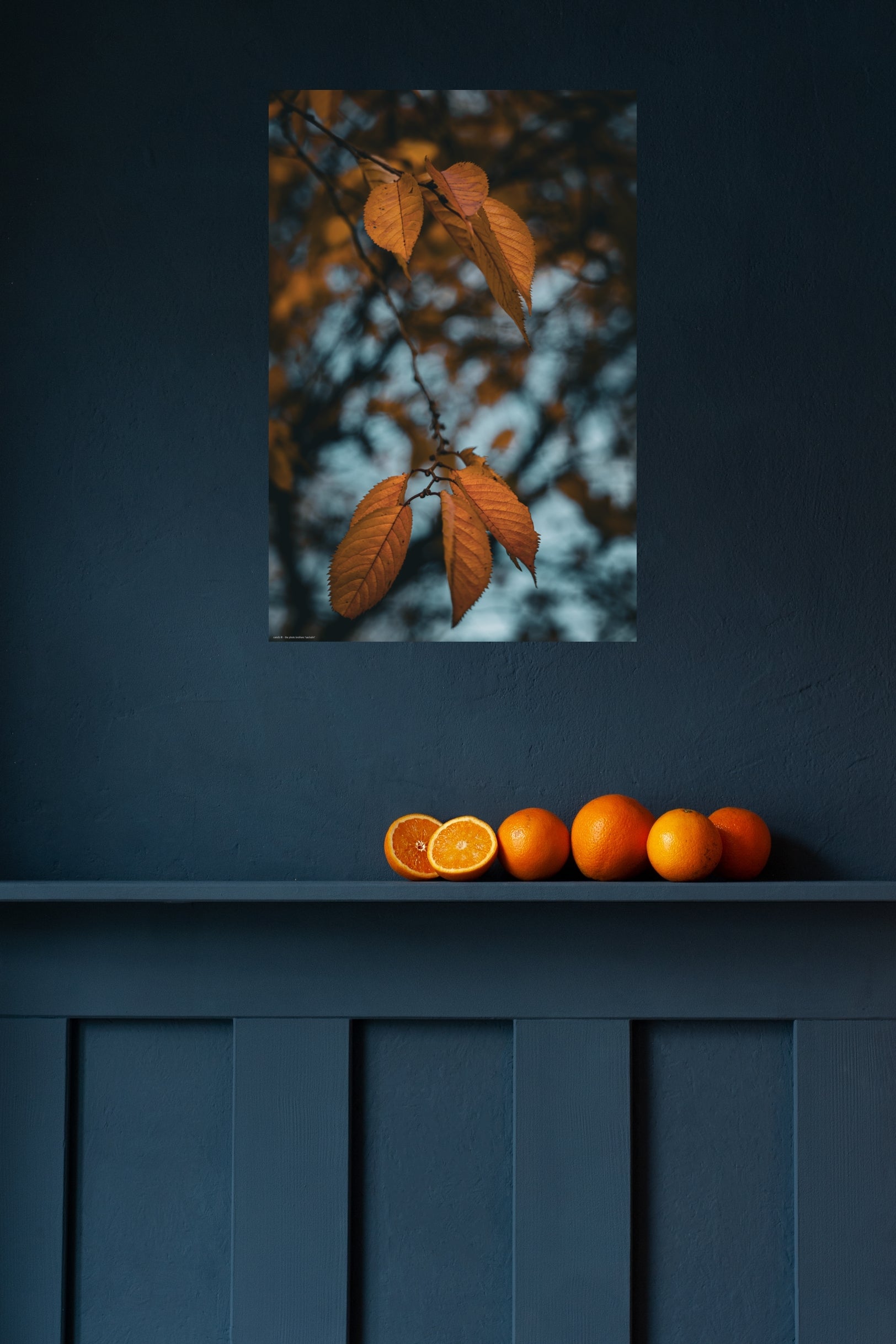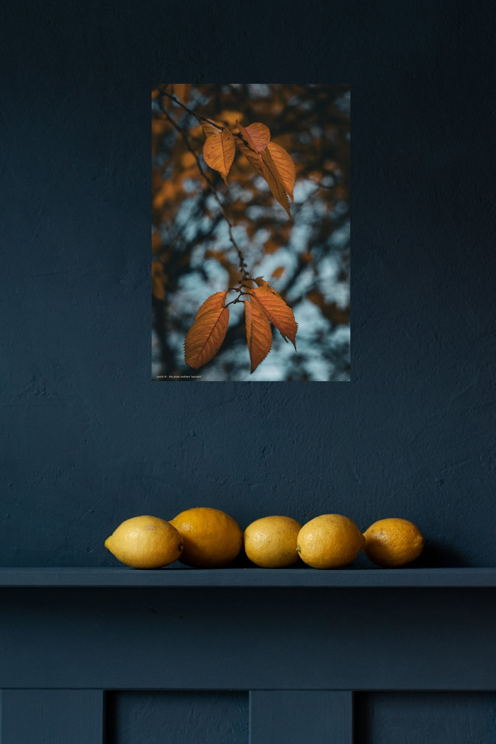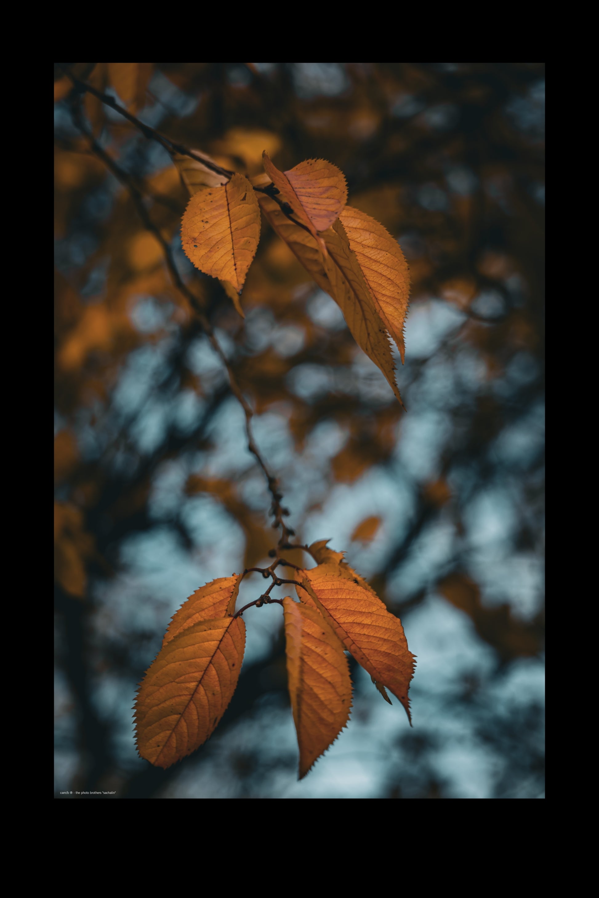 Herbstliche Aufnahme von braun-orangenen Blättern der Sacharin Kirsche (Fotograf: DE, 2023).