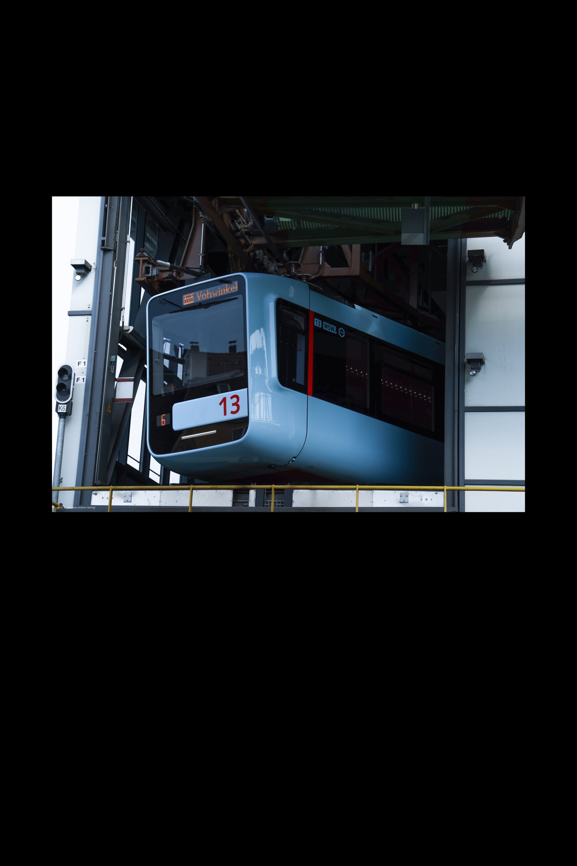 Auf diesem Bild ist die Wuppertaler Schwebebahn bei der Ausfahrt aus der Wagenhalle in Wuppertal Oberbarmen zu sehen (Fotograf: DE, 2022).