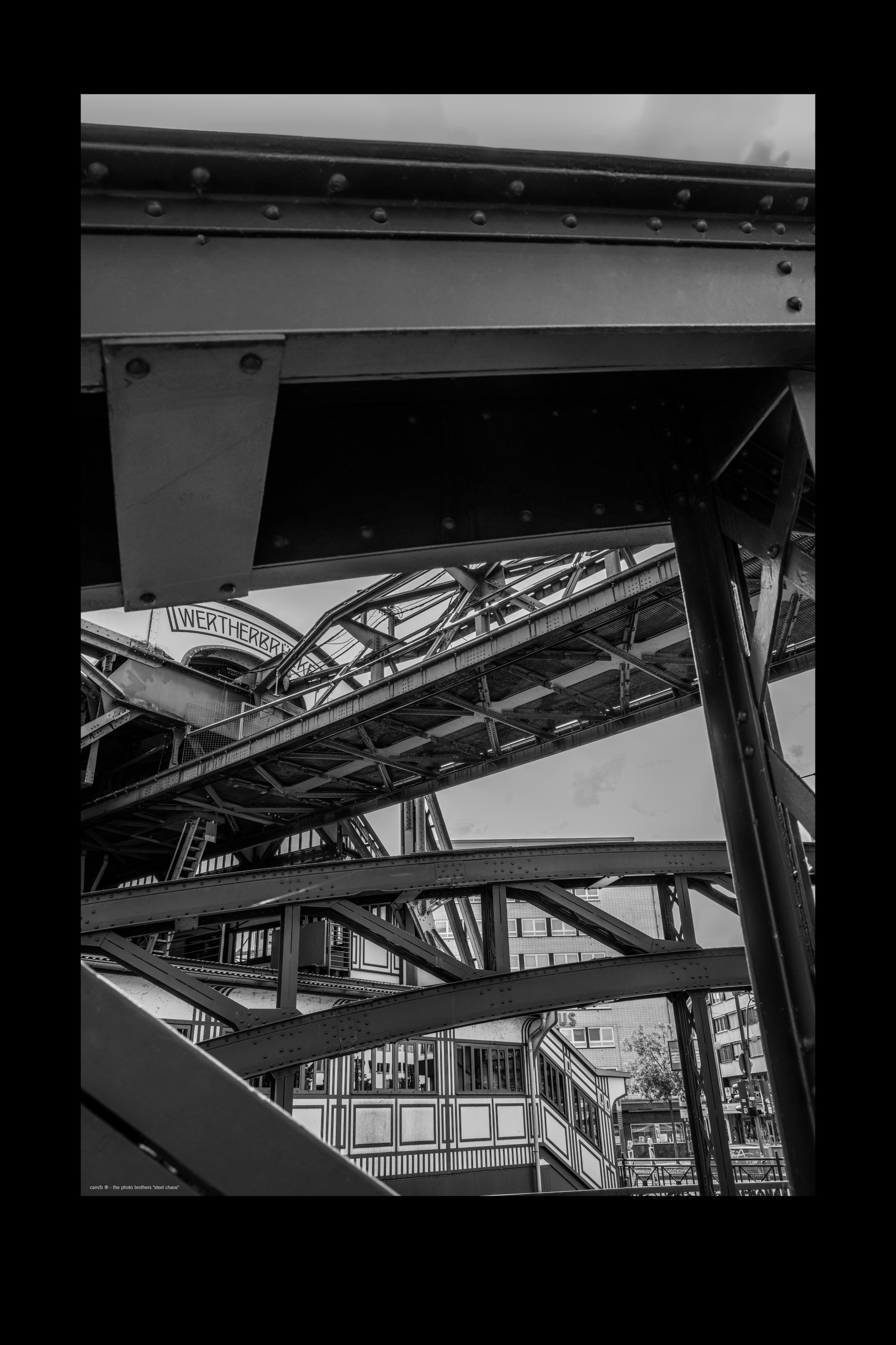 Etwas andere Perspektive auf die Schwebebahn Station "Werther Brücke" in Wuppertal im Jugendstil. Die Station wurde 1903 eröffnet, 1984 umfangreich saniert und dann im Jahr 2013 komplett neu errichtet (Fotograf: DE, 2024).