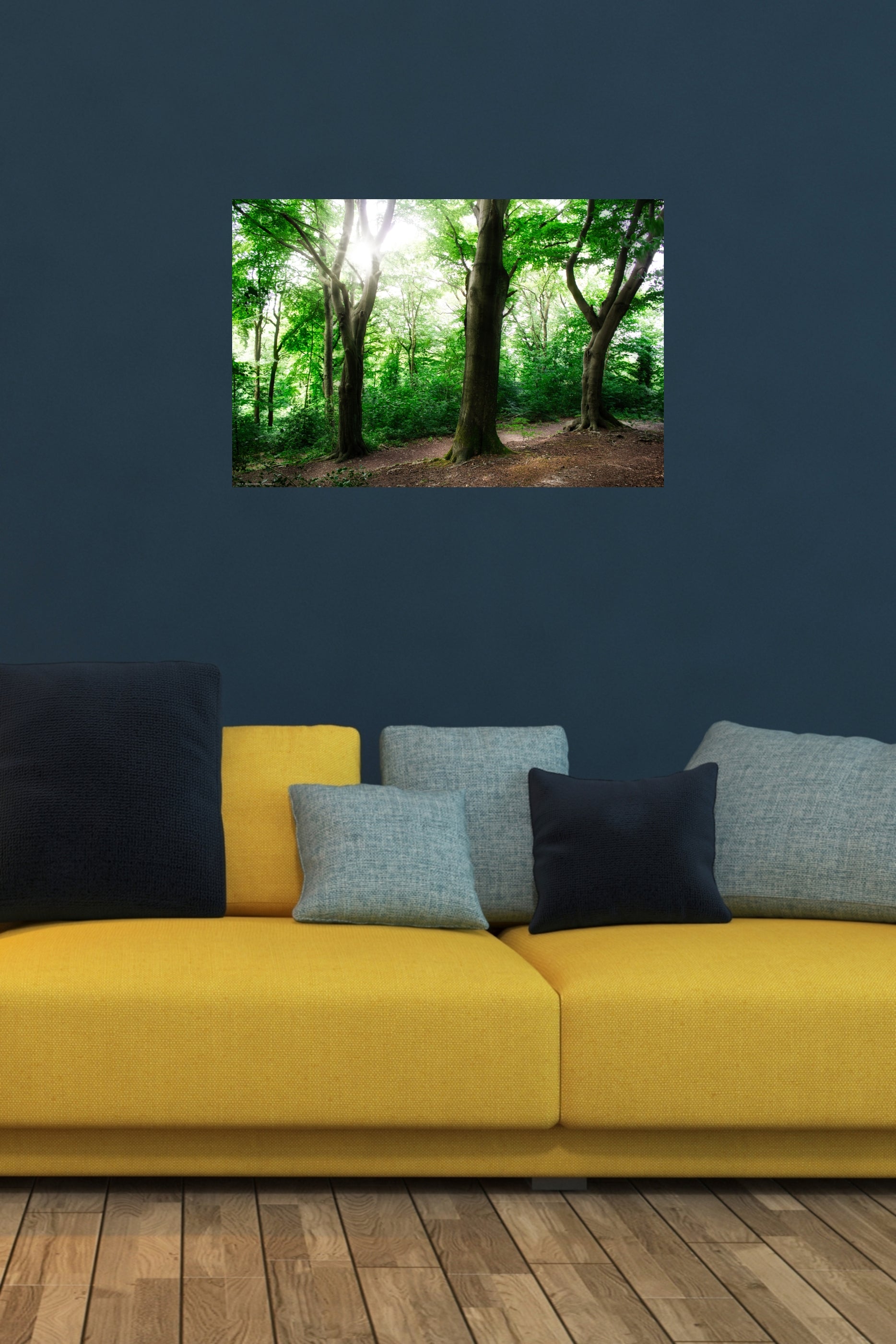 Ein Spaziergang im Wald am frühen morgen bei Sonnenaufgang ist mitunter ein ganz besonderes Erlebnis - und in diesem schönen Wandbild kann man diese Atmosphäre nahezu förmlich greifen (Fotograf: TE, 2025).