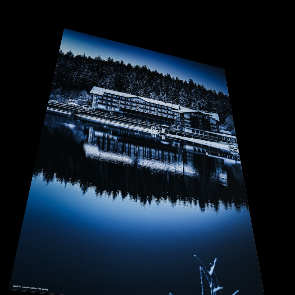Fangen Sie die unvergessliche Magie der bayerischen Alpen ein mit diesem atemberaubenden Wandbild des legendären Eibsee-Hotels. Dieses hochwertige Kunstwerk fängt den stillen Moment ein, in dem die majestätische Kulisse der Zugspitze und die ruhige, spiegelglatte Oberfläche des Eibsees auf das charmante Hotelgebäude treffen. Die tiefen Blautöne des Wassers, die schneebedeckten Wälder und die klare Winterluft machen dieses Bild zu einem visuellen Erlebnis. Für manche weckt die winterliche Isolation des Hotels sogar entfernte Assoziationen an das ikonische "Overlook Hotel" aus dem Horrorklassiker "The Shining" von Stanley Kubrick aus dem Jahr 1980 (Fotograf: Christian Horenkamp, 2025).