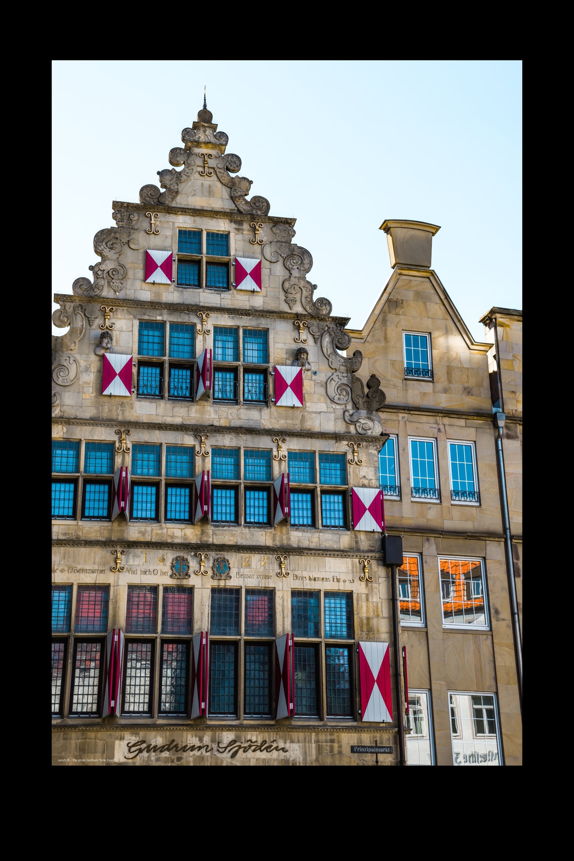 Alte Hausfassade in Münster am Prinzipalmarkt (Fotograf: DE, 2022).