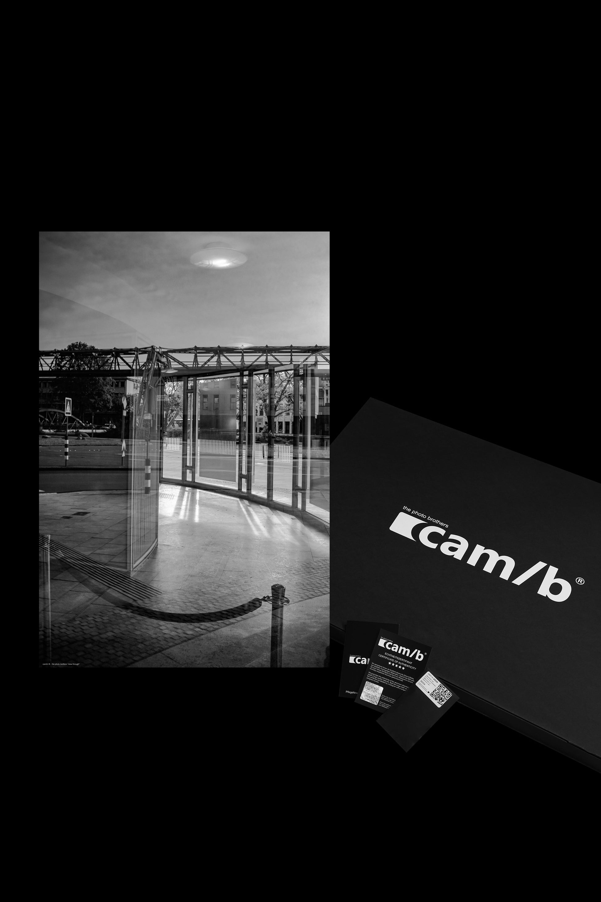 Interessanter Blick durch die Eingangshalle des Wuppertaler Opernhauses auf die Schwebebahn. Die Unterscheidung wo der Himmel anfängt, und die Decke aufhört gestaltet sich für den Betrachter schwierig und phantastisch zugleich. Durch die schwarz weiße Darstellung ergibt sich darüber hinaus eine besondere Atmosphäre (Fotograf: DE, 2021).